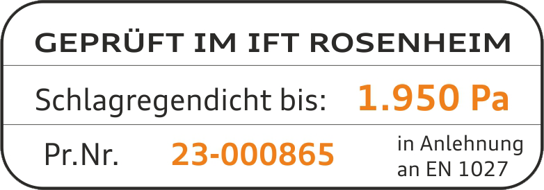 Schlagregendicht geprüft bis 1950 Pa